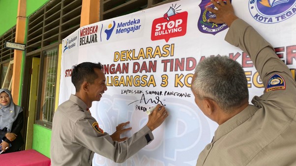 Perundungan/Bullying adalah perilaku tidak menyenangkan baik secara verbal, fisik, ataupun sosial di dunia nyata maupun dunia maya yang membuat seseorang merasa tidak nyaman, sakit hati dan tertekan baik dilakukan oleh perorangan ataupun kelompok. Berdasarkan data hasil Asesmen Nasional tahun 2021 menunjukan bahwa 24,4% peserta didik berpotensi mengalami insiden perundungan di satuan pendidikan. Undang-Undang No. 35 tahun 2014 yang merupakan Perubahan atas Undang – Undang No.23 Tahun 2002 dan Pemendikbud No. 22 Tahun 2015 tentang Perlindungan Anak dan pencegahan tindak kekerasan di lingkungan satuan Pendidikan. Berdasarkan hal tersebut UPTD SPF SDN Kaligangsa 3 melaksanakan program anti bullying bekerjasama dengan Polres Kota Tegal yang dalam hal ini diwakili Polsek Sumur Panggang. Paparan disampaikan oleh Kapolsek Sumur Panggang Pardi, S.H, M.H. tentang pencegahan bullying di sekolah. Pencegahan bullying dapat dilakukan dengan memajang poster tentang anti bullying, sosialisasi oleh pihak kepolisian, serta penanganan tanggap dari tim satgas anti bullying di sekolah. Penanganan bagi pihak sekolah dan di rumah sepatutnya seluruh elemen termasuk para guru dan orang tua harus saling bekerja sama. Para guru dapat diminta bantuan untuk mengamati bila ada perubahan fisik atau emosi dari anak murid mereka, seperti terlihat ketakutan atau mengalami cidera fisik. Orang tua juga harus memperhatikanĀ interaksi yang berbeda yang ditunjukkan anak di rumah dan berupaya membina kedekatan dengan teman-teman sebaya agar terciptanya hidup rukun dan tidak ada niatan untuk membully. Acara sosialisasi dilanjutkan dengan penandatanganan deklarasi anti bullying dari pihak Kepolisian, Guru, Siswa serta Komite Sekolah. Penandatanganan deklarasi diharapkan dapat menjadi komitmen bagi seluruh pihak untuk mencegah perundungan.