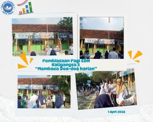 SDN Kaligangsa 3 dapat melaksanakan kegiatan Pembiasaan pagi yang rutin dilakukan setelah libur lebaran. Pembiasaan pagi hari ini yaitu membaca doa-doa harian.